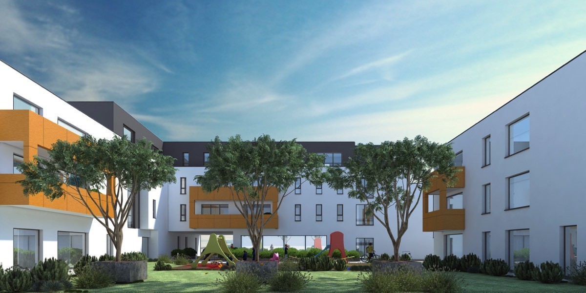Le projet a été réalisé en parallèle au réaménagement du centre de Rodange. Le bâtiment est composé de deux blocs disposés et d'un troisième bloc en 2e position et délimitant une cour intérieure. Le projet comprend des appartements ainsi que des locaux commerciaux aux rez-de-chaussée. Erigé sur un ancien parking public, celui-ci a été intégré au sous-sol du bâtiment. L'accès aux appartements se fait par un passage traversant la cour intérieure qui fait fonction d'espace de rencontre pour les habitants.