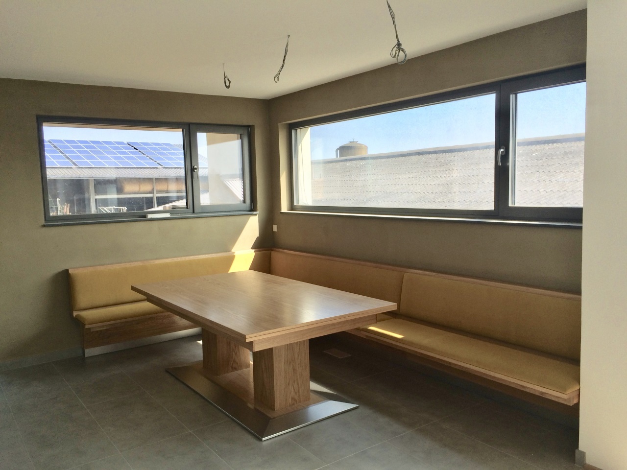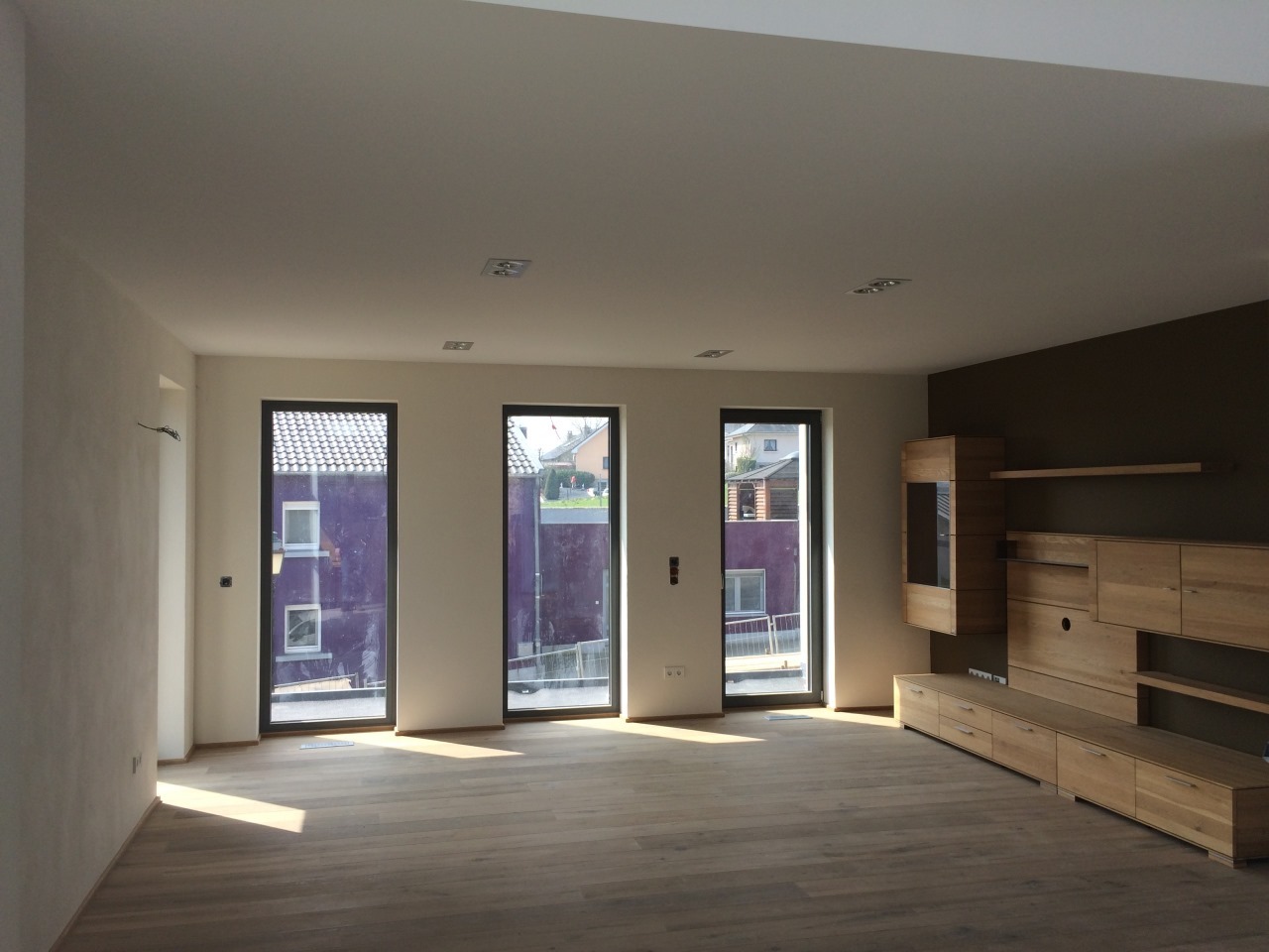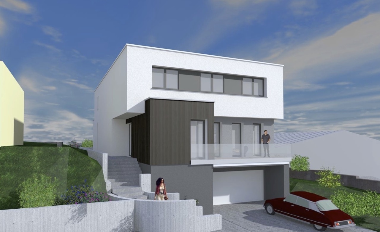 Maison unifamiliale passive (Classe AAA), en bois massif. Le rez-de-chaussée comprend un petit bureau et le séjour donnant sur un petit balcon du côté rue (ouest). La cuisine / salle à manger est orientée vers le jardin à l'est et est ouverte sur le séjour. A l'étage une bibliothèque en mezzanine donne sur le séjour et une grande baie vitrée au sud. Trois chambres pour enfants et la chambre des parents sont disposées autour de la mezzanine.