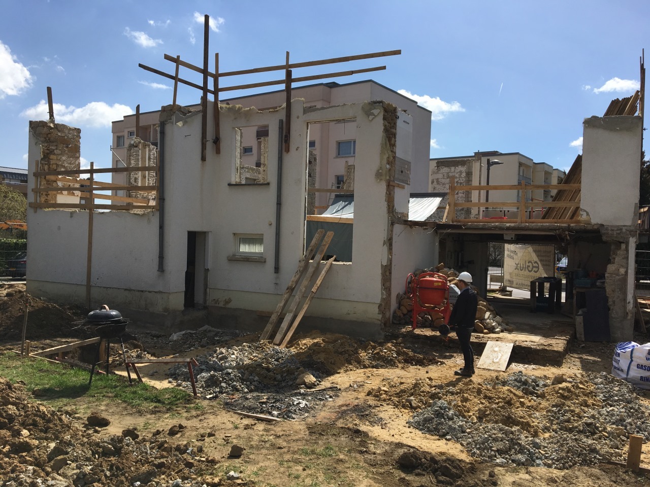 Transformation d'une maison datant des années 1960-1970. Tous les espaces du premier étage sont décloisonnés afin de créer un grand espace de vie tournant autour de la cage d'escalier. Un étage supplémentaire est construit en ossature bois, abritant trois chambres et donnant sur une belle terrasse orientée au sud.